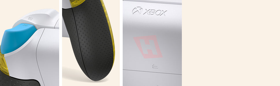 Look under the hood of the transparent, yellow finish with a custom-colored, visible rumble motor and lighting effects that play off the Xbox button. Feel the spirit of the Horizon festival with a color shifting hybrid D-pad and asymmetrical thumbsticks in different bold colors.